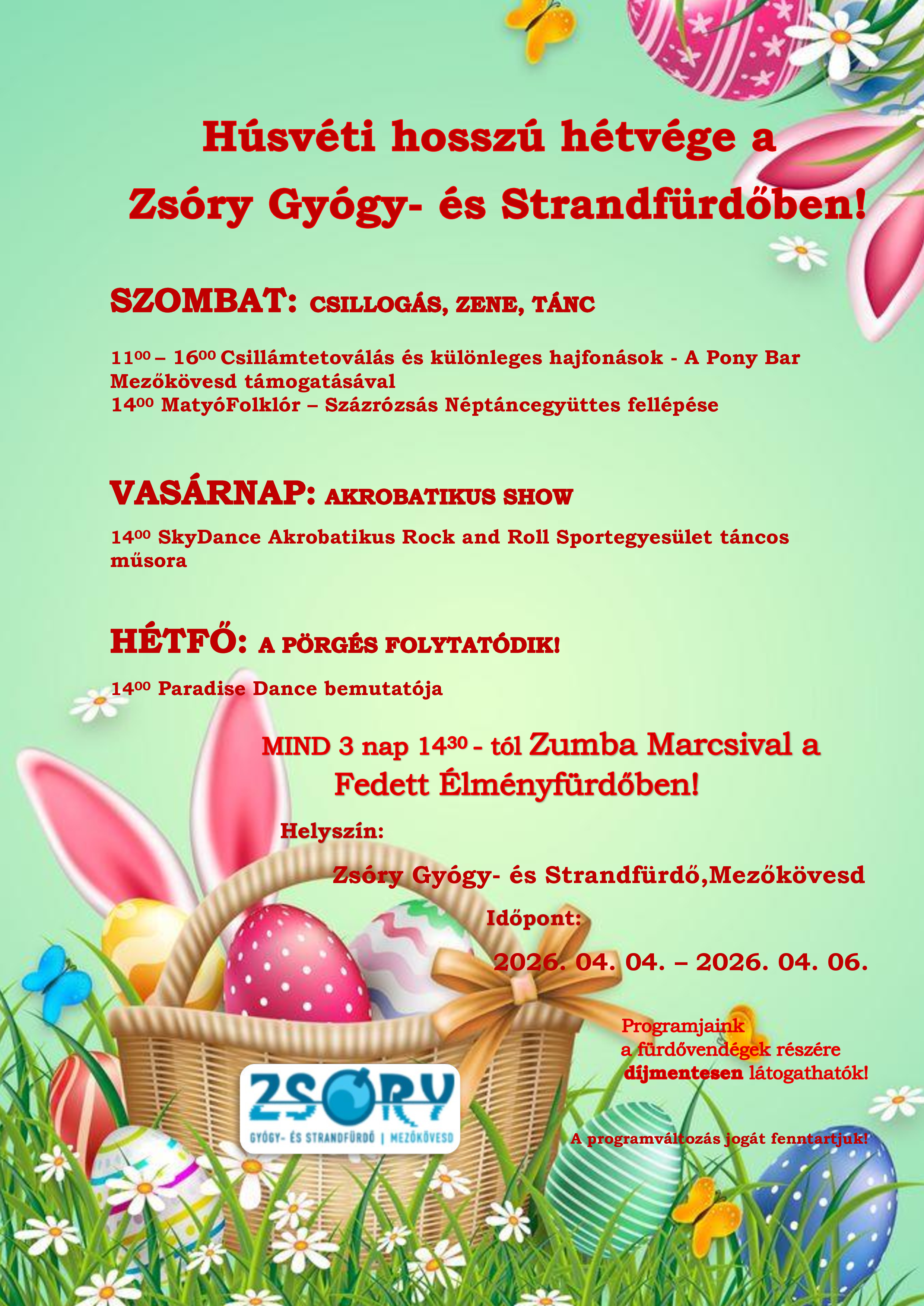 Húsvéti programok a Zsóry-fürdőben!