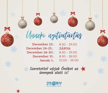 Holiday opening times on Christmas and New Year's Day.